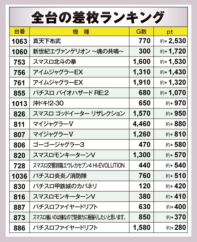 2千pt越えの『真天下布武』を筆頭に優秀台を多数確認できた。