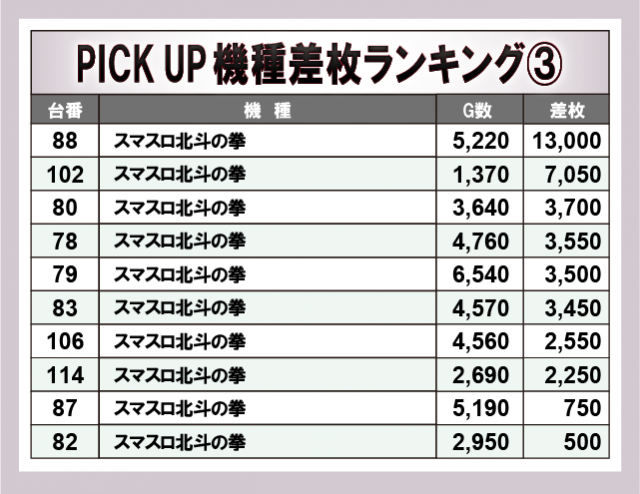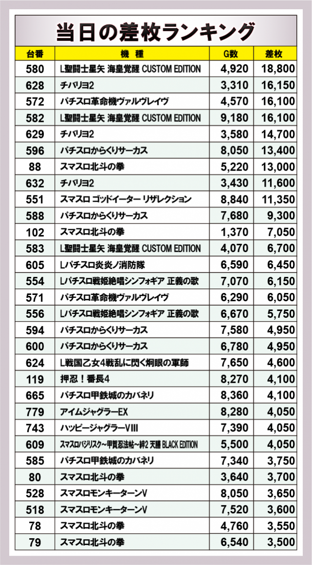※差枚数順に掲載しています。