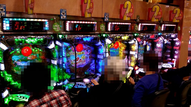 新台が多く並ぶ4円パチンココーナーは、特に「CRヱヴァンゲリヲン~いま、目覚めの時~」で、プレイヤーたちが楽しく遊技をしている姿を確認。