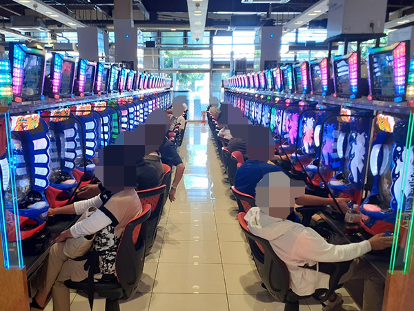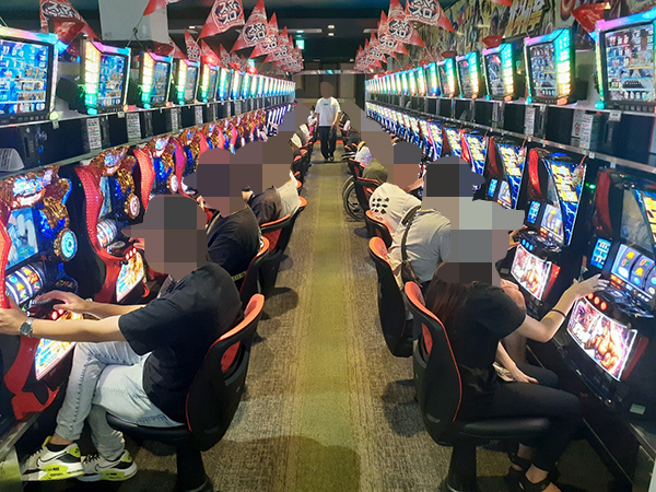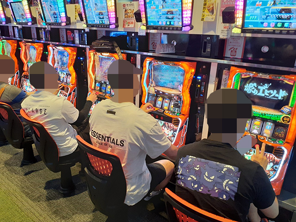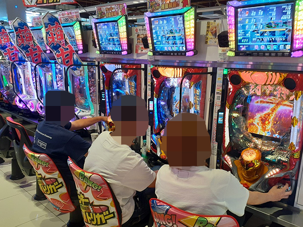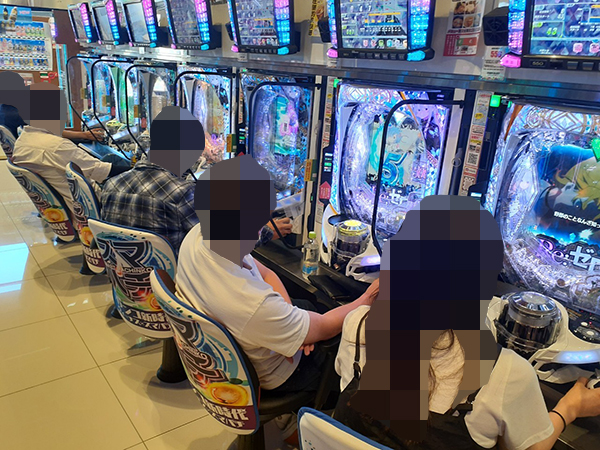 取材時は既に多くのプレイヤーが集結しパチンコ、パチスロを問わずにぎやかな状況となっていた。