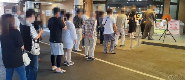 前回、7月15日の「英雄のリアル」が初実施となった同店だが、1か月を経て遂に2回目の実施と相成った。この日の朝イチは前回と同様に100人超の並びがあってのスタート。