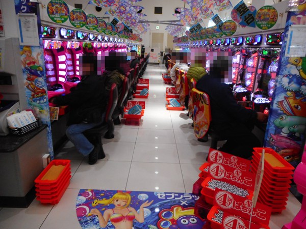 4円パチンコでは、「CR花の慶次X~雲のかなたに~」「ぱちんこCR真・北斗無双」「CRスーパー海物語IN沖縄4」「CRルパン三世~Lupin The End~」の人気が高く、華やかな光景が広がっていた。プレイヤーの表情から遊技を満喫している様子がうかがえた。