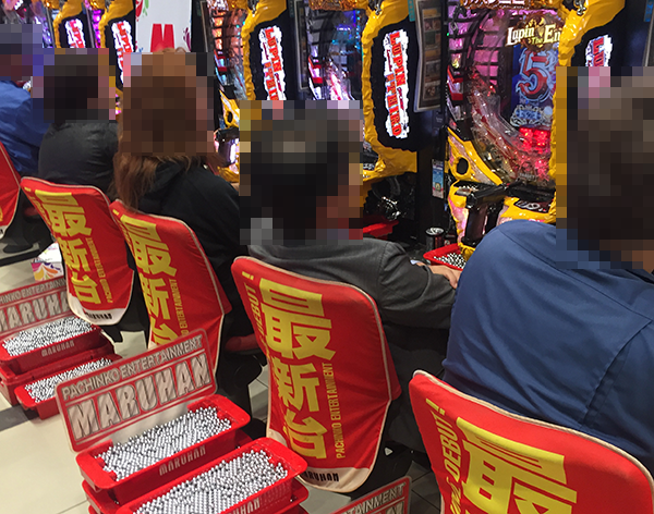 14時頃の4円パチンコにおいて、ひときわにぎわっていたのが「CRルパン三世~Lupin The End~」。プレイヤーたちがキラキラとした笑顔で遊技をおこなっていたことからも、充実感を得られている様子がうかがえた。