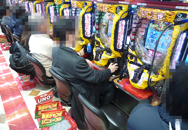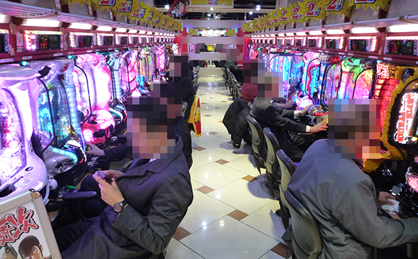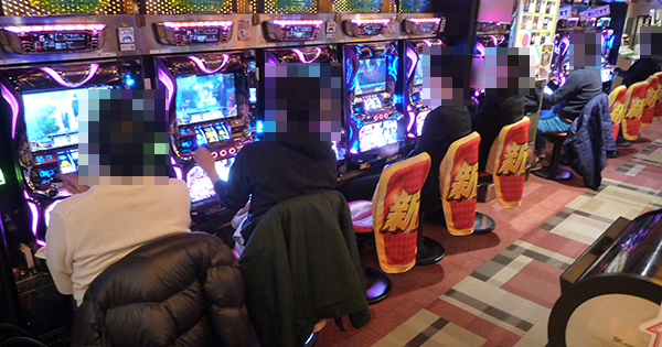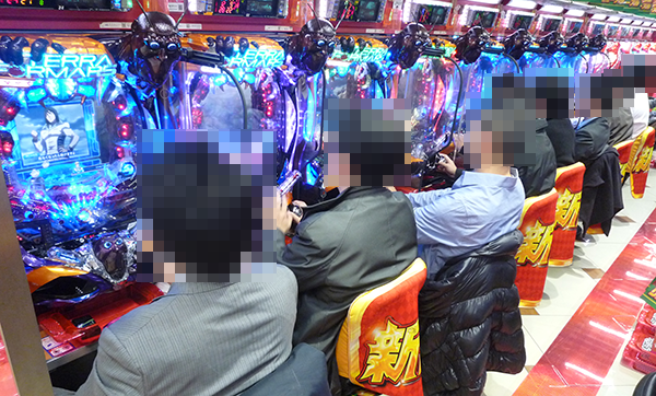 夕方頃の1000円/240玉パチンコでは、新台の「CRぱちんこテラフォーマーズ」が満席。機種の魅力を堪能しているような明るい表情も印象的であった。
