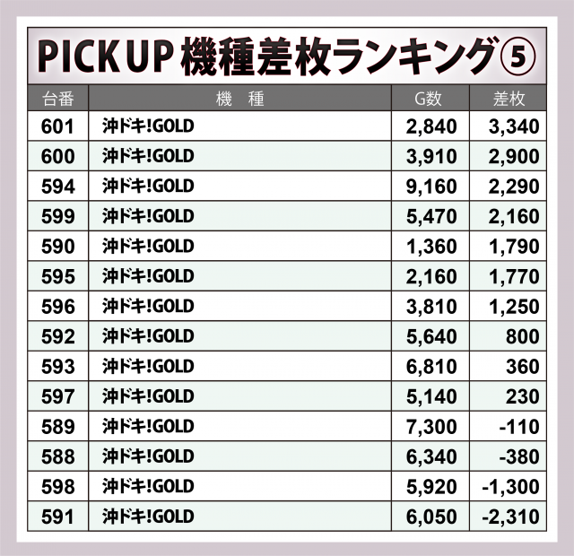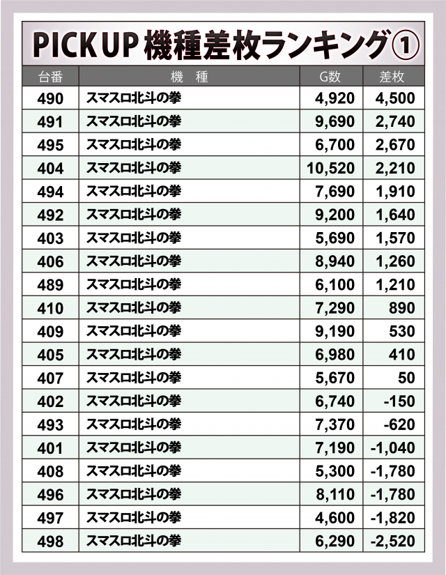 『スマスロ北斗の拳』『マイジャグラーⅤ』『アイムジャグラーEX』では+4,000枚クラスの台が生じ、『沖ドキ!GOLD』では特に高いプラス率が目を引いた。
