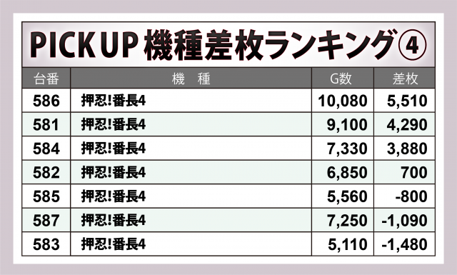 中でも『押忍!番長4』では+5,500枚超&+4,300枚弱&+3,900枚弱が1台ずつと、上で挙げた機種にも負けない盛況を誇った。