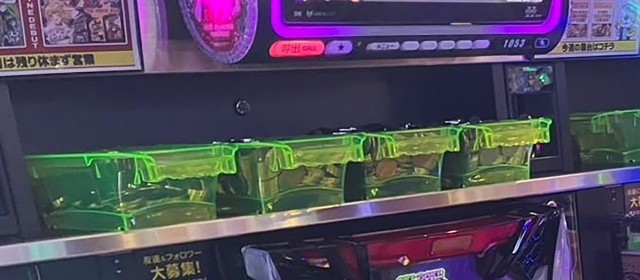 最初は20スロのシマからチェックを開始した。前項に掲載した写真でお分かりと思われるが、ドル箱の量で一際目立っていたのが沖スロコーナーだ。