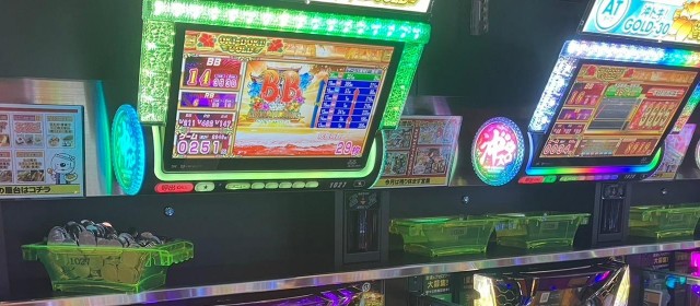 頭上及び通路側にドル箱が散乱した『沖ドキ!BLACK』を皮切りに『沖ドキ!GOLD-30』も拮抗。30パイマシンが20スロで一番と言える盛り上がりを誇った。