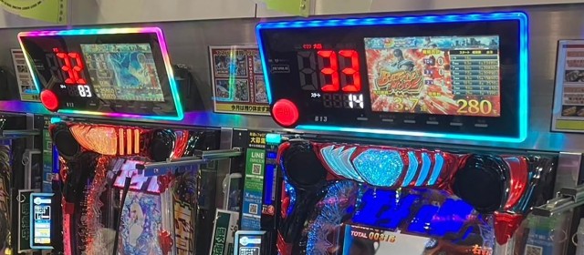 取材に訪れたのは午後の早い時間帯だったが、『e北斗の拳10』『Pフィーバー機動戦士ガンダムユニコーン 再来-白き一角獣と黒き獅子-』のどちらにも出玉急上昇の台が目撃され、前者では大当り30回超が2台並び、後者では40回に達した台が生じていた。