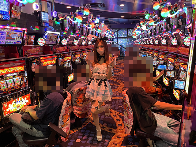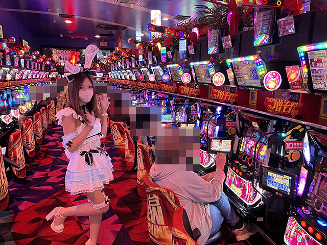 パチスロコーナーのあちこちに、華やかな光景が広がっていました。