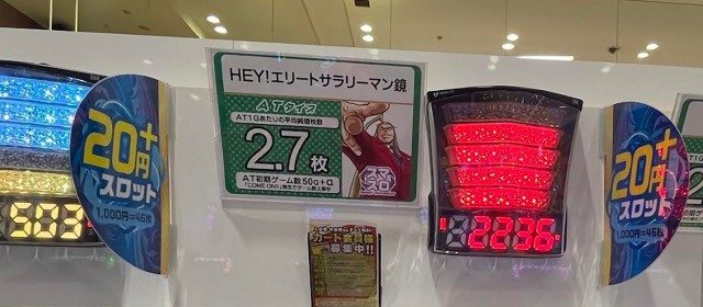 まずは[1000円/46枚]スロについて記していこう。結論から言うと、歴代最大級の好況が広がっていた。