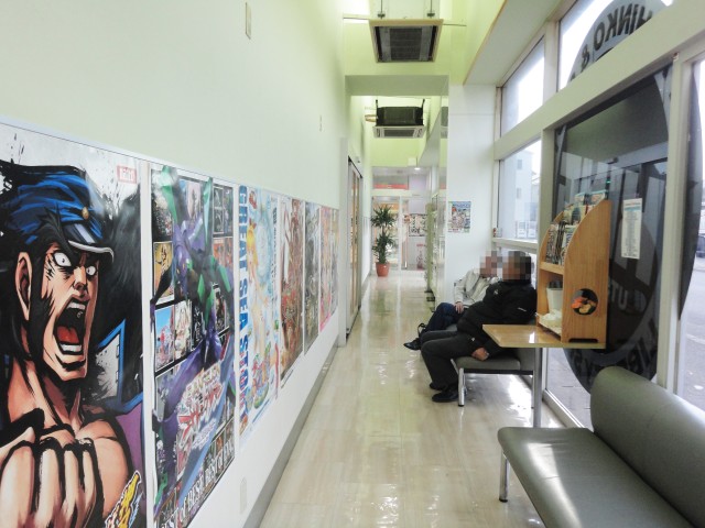 店内入口通路には椅子も用意されており遊技以外にもゆったりとリラックスできる空間もつくられている。