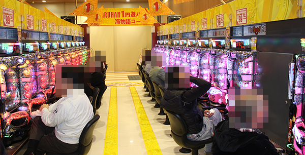 海物語シリーズと遊びやすいスペックの機種を中心に1円パチンコも盛況。