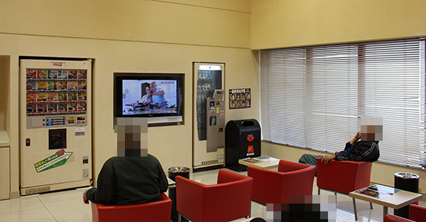 テレビや雑誌などが用意されているレストコーナーは広々としている。座席数も多く、休憩中や空き台を待つ時間も快適に過ごすことができそうだ。