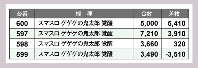 さらに最新導入機種の『スマスロ ゲゲゲの鬼太郎 覚醒』と『Lワンパンマン』も盛況で、どちらも+5,000枚超えの好調台が誕生していた。