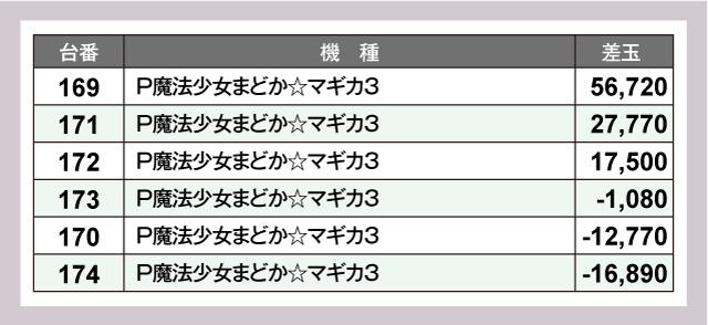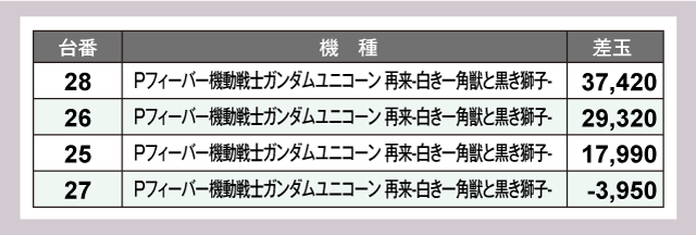 一方のパチンココーナーを見ると、『Pフィーバー機動戦士ガンダムユニコーン 再来-白き一角獣と黒き獅子-』から+37,000発、『P魔法少女まどか☆マギカ3』では+56,000発と素晴らしい結果を残した。