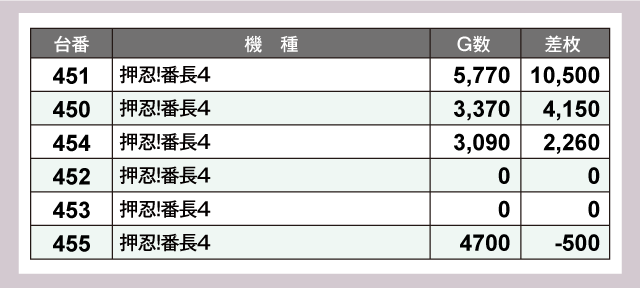 まず、パチスロをチェックしてみると『押忍!番長4』でスロッターなら誰もが夢見る万枚超の+10,500枚を達成。また『アイムジャグラーEX』からは+2,000枚超の台が複数出現する活況っぷりを見せていた。