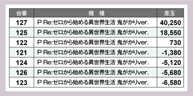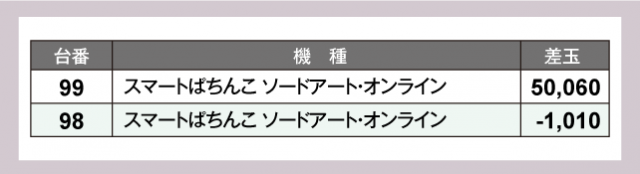 一方、パチンココーナーは『Pリング 呪いの7日間3 ラッキートリガーVer.』と『スマートぱちんこ ソードアート・オンライン』で驚愕の+50,000発超、『P Re:ゼロから始める異世界生活 鬼がかりver.』からは+40,000発超が発生し店内を盛り上げていた。