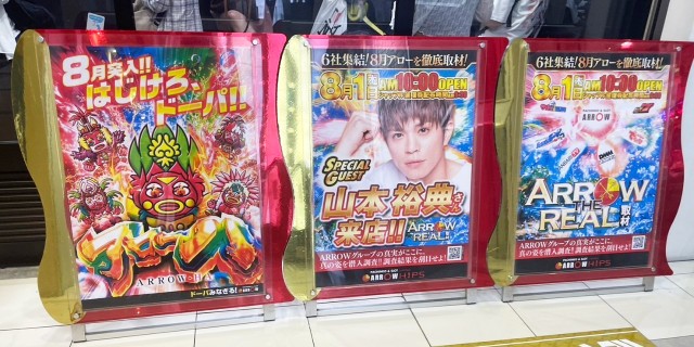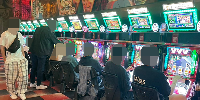朝から150人以上が行列をつくったこの日。開店するやいなや、パチンコ・パチスロどちらのコーナーもプレイヤーであふれ、早くも盛り上がりを見せていた。さらに当日は山本裕典さんが来店。より一層店内の熱気が増しているようだった。