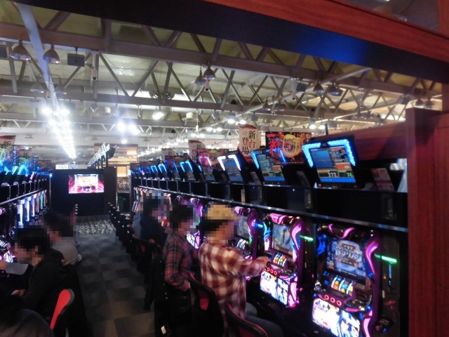 まずは4円パチンココーナーをのぞいてみると、新台の「ぱちんこCR真・北斗無双219Ver.」が満席となるほど高稼働をキープ、プレイヤーの活気あふれる光景が広がっていた。前作のミドルタイプよりも軽快な展開に、プレイヤーも笑みを浮かべながら遊技をおこなっていた。