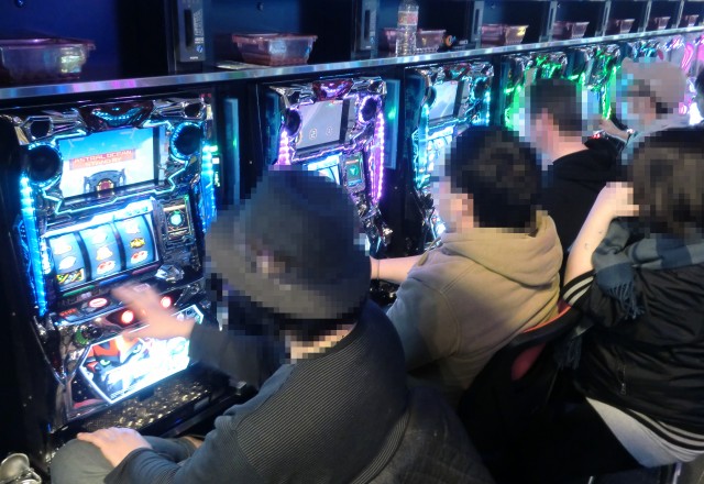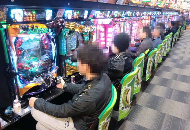活気ある雰囲気に包まれた4円パチンココーナー。「CRAリング 呪い再び」では、華麗なパフォーマンスをみせるプレイヤーが随所にみられた。