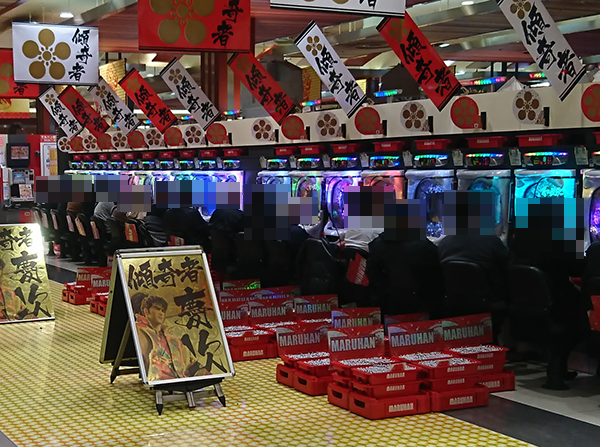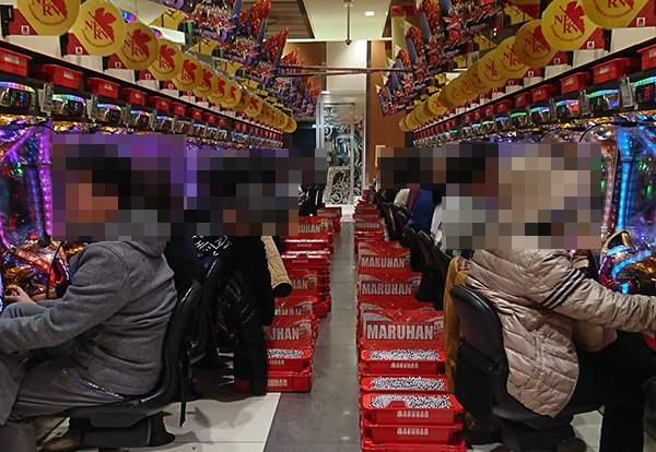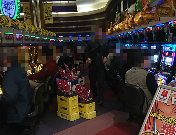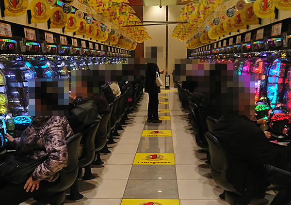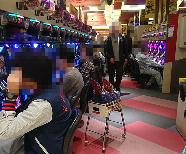 パチンコの低貸し玉コーナーもにぎやかな雰囲気。