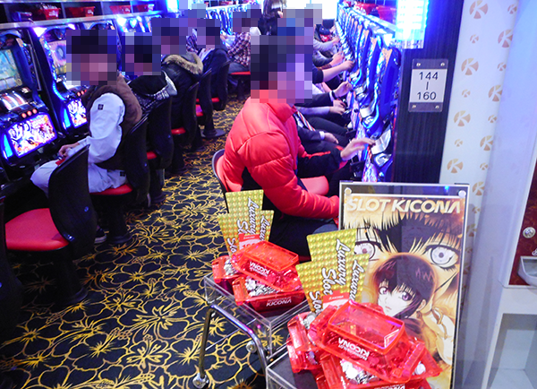 「SLOT魔法少女まどか☆マギカ2」や「パチスロ北斗の拳 修羅の国篇」など、さまざまな機種がにぎわっていた。