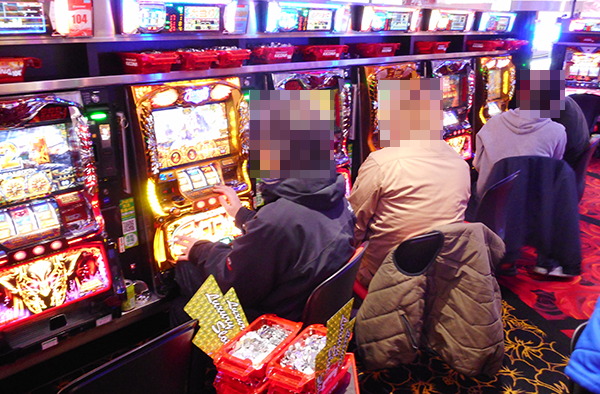 「アナザーゴッドハーデス」と「ミリオンゴッド-神々の凱旋-」のにぎわいも大きい。笑顔で遊技をおこなっている姿もみられ、充実した時間を過ごせていることが伝わってきた。