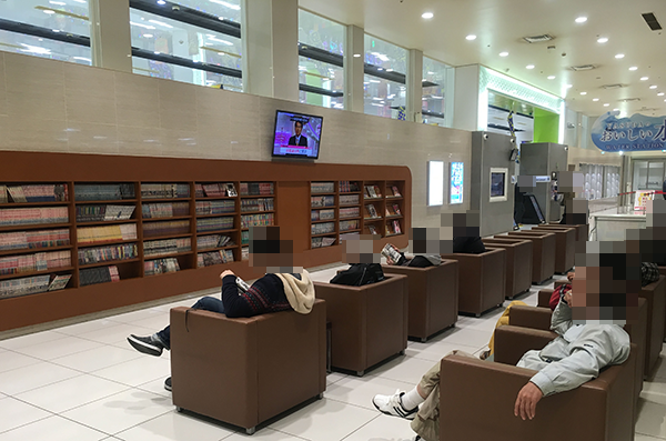 遊技面のほかに、漫画本やひとりがけのソファといった設備面も優秀。