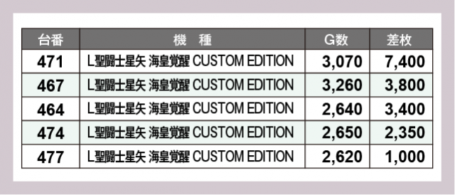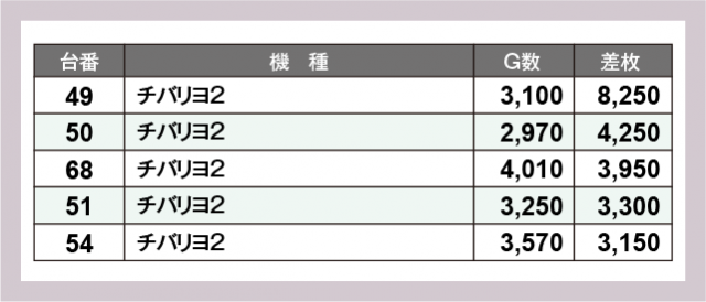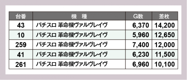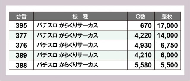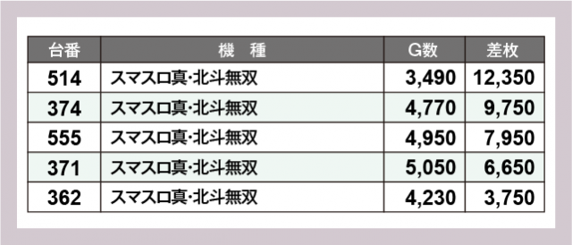 ※差枚数順に掲載しています