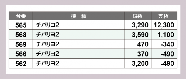 ※差枚数順に掲載しています