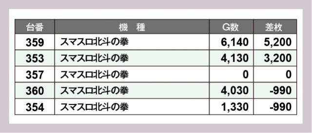 ※差枚数順に掲載しています