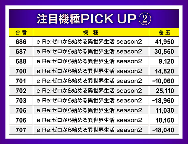 今回もパチンココーナーの2BOXの動向を調査。おなじみの『ぱちんこ シン・エヴァンゲリオン Type レイ』は不調だったようで、10,000玉を超える結果に出会えず…。対照的に10,000玉超え記録どころか、30,000玉・40,000玉を超える結果が生まれていた『e Re:ゼロから始める異世界生活 season2』は、今後要注目マシンとなりそうな気配…!