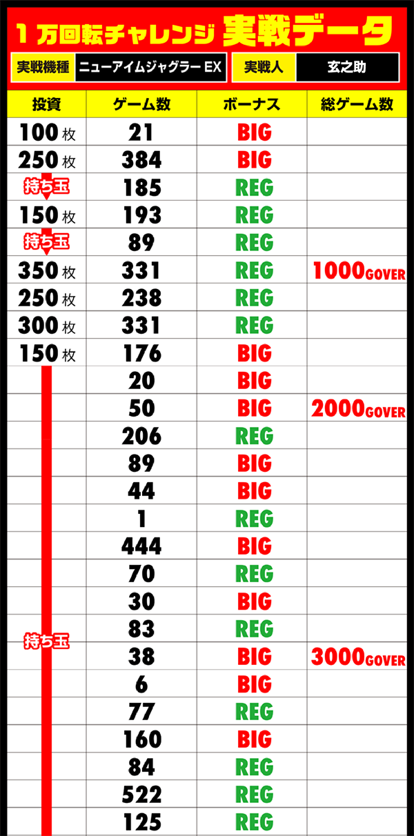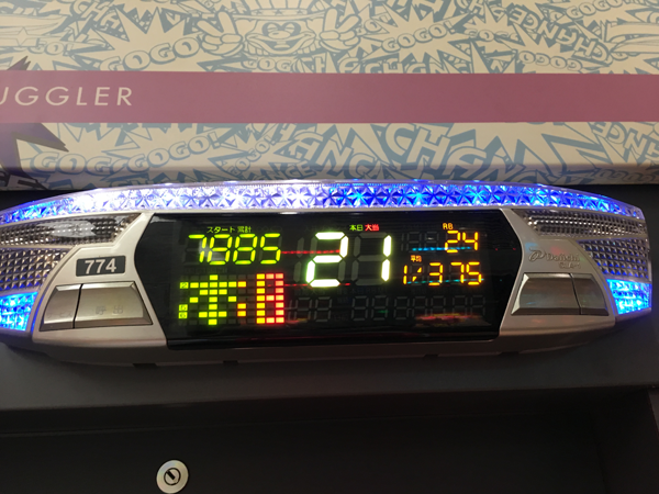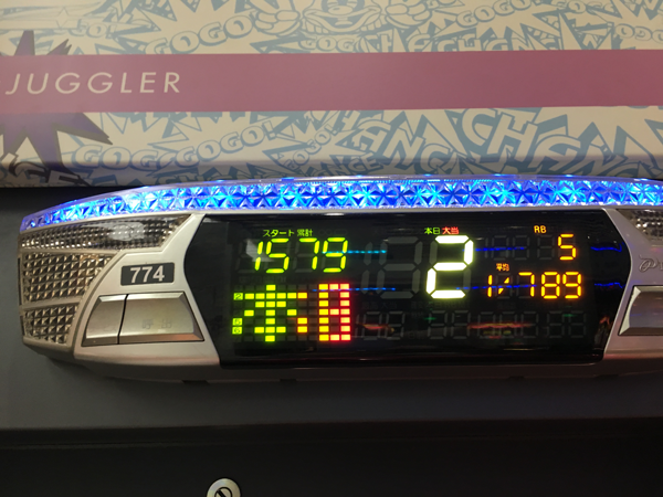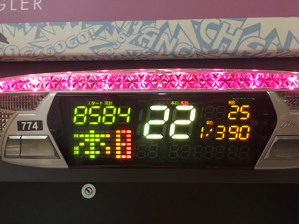 「ニューアイムジャグラーEX」のカド台でチャレンジをはじめ、テンポよく、通常時のゲーム数を消化していた。
