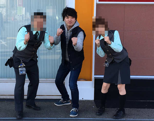 自分の看板の前でポーズ、スタッフさんと一緒にポーズとアピールはバッチリ。