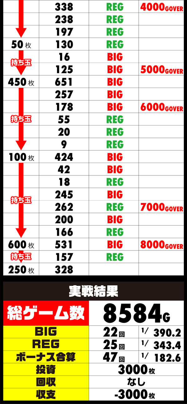 しかし、ボーナスの消化に時間をあまり使っていないわりには、ゲーム数が伸びていない…。