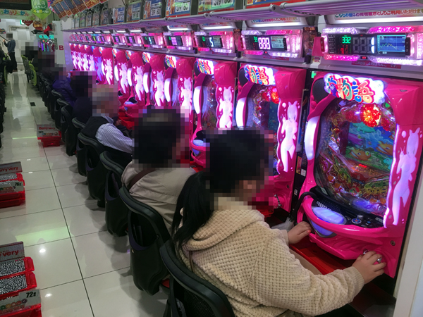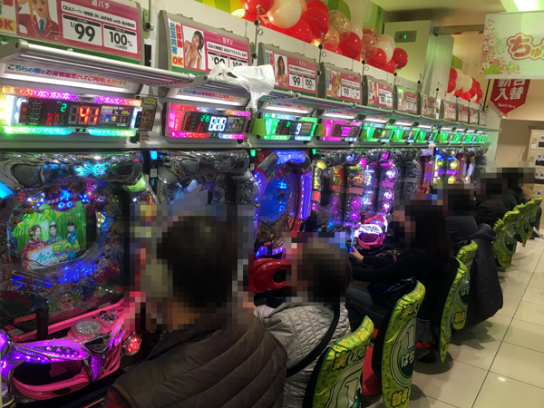 1円パチンコでは、幅広い年代のプレイヤーがパチンコを楽しむ姿が見られ、和やかな雰囲気が印象的。