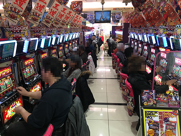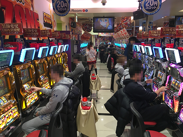 この日も大勢のプレイヤーが来店しており、パチンコとパチスロの各シマは笑顔に満ちていた。