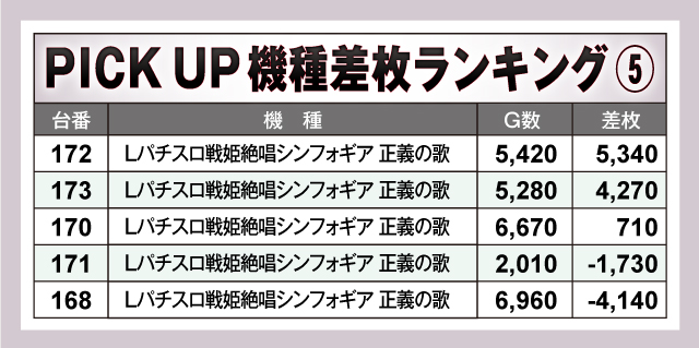 続いては、当日とくに盛り上がっていた5機種を紹介。5機種すべてが差枚トータルプラスで終了しており、それらのなかでもっとも優秀だったのは、最優秀台も獲得した「押忍!番長4」で間違いないだろう。ピックアップ5台のうち3台が差枚+1,000枚以上のプラスと素晴らしい結果を残してくれていた! またこれら以外にも良台はアチコチに出現していたので、チャンスは至る所に隠されていたようだ!