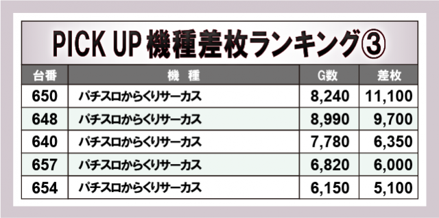 上表の6機種が盛り上がりを牽引し、活気と熱気を放ってファンを歓喜させていた。なかでも『パチスロからくりサーカス』では、万枚OVERを筆頭に差枚数プラス4桁を多数輩出しており、多くのファンが競い合うようにレバーを叩いていた様子が鮮烈だ。