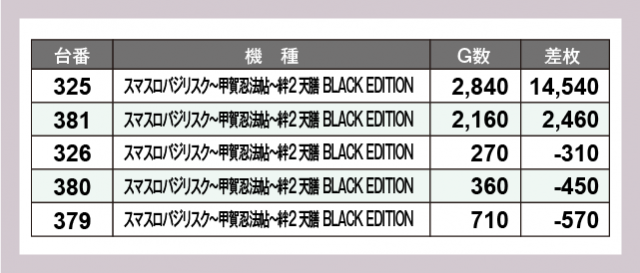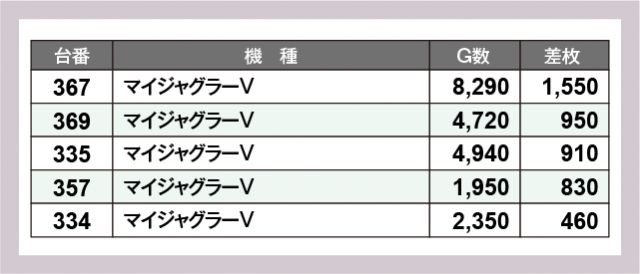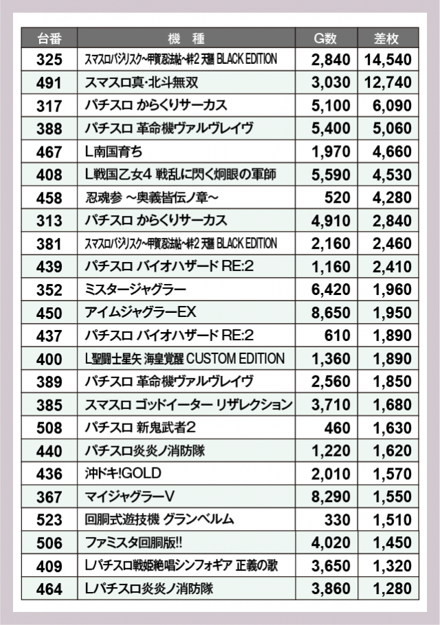 ※差枚数順に掲載しています