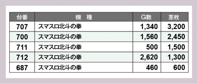 ※差枚数順に掲載しています