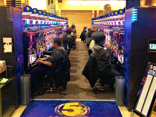 1円パチンコ、5円パチスロの低貸しコーナーも人気。若年層から年配層まで幅広い年代のプレイヤーでにぎわっていた。
