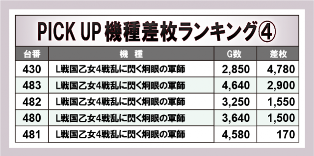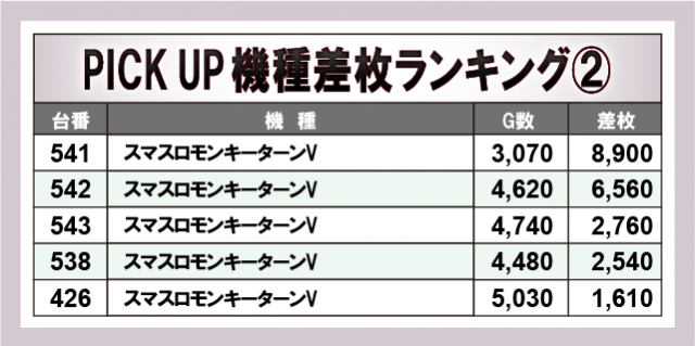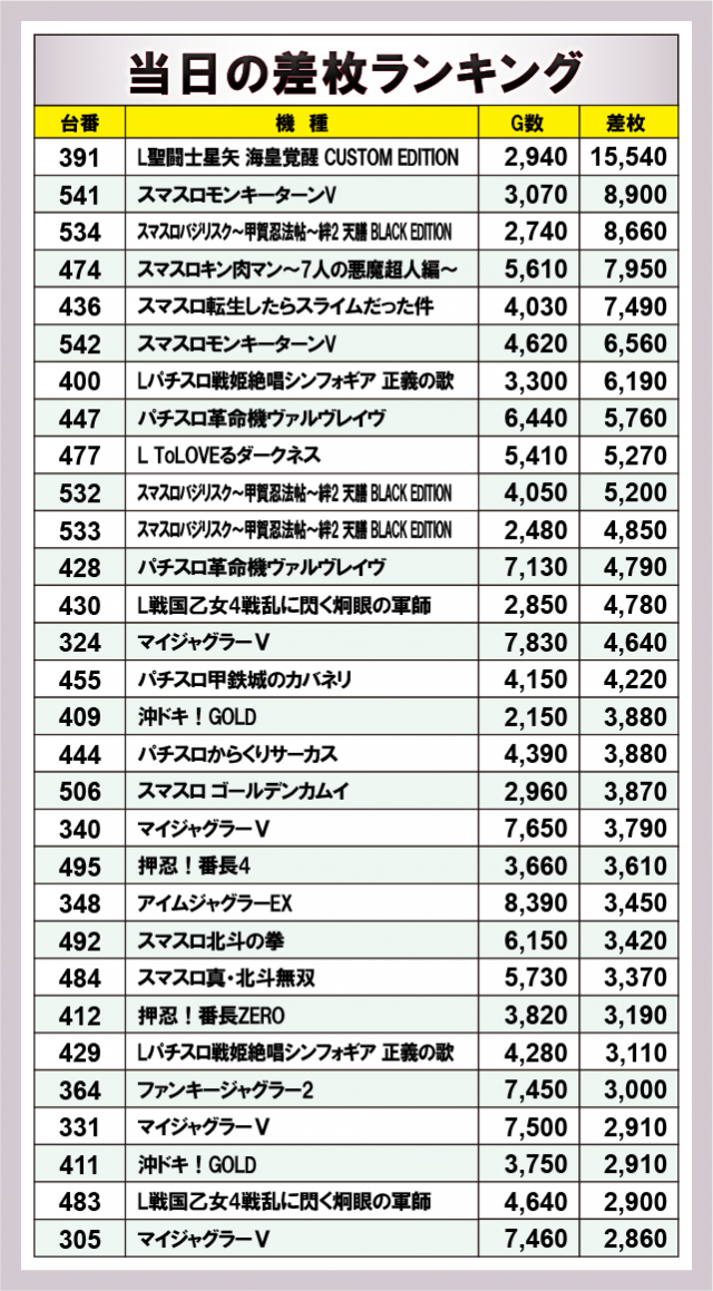 ※差枚数順に掲載しています。