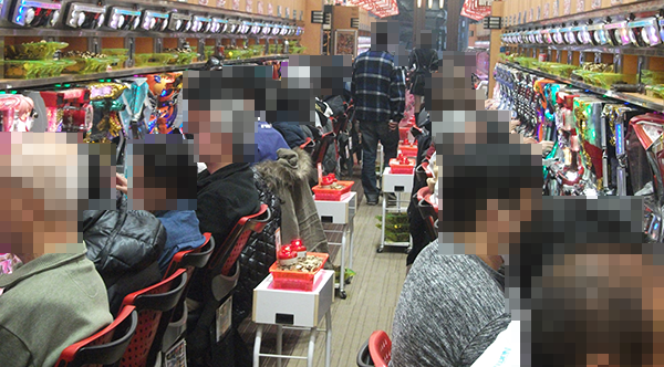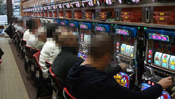 14時をまわった頃の20円パチスロをみると、「ミリオンゴッド-神々の凱旋-」と「アナザーゴッドハーデス」に機種の性能を引き出しているといった姿を目撃。プレイヤーの明るい表情からは、心から楽しめていることもうかがえた。