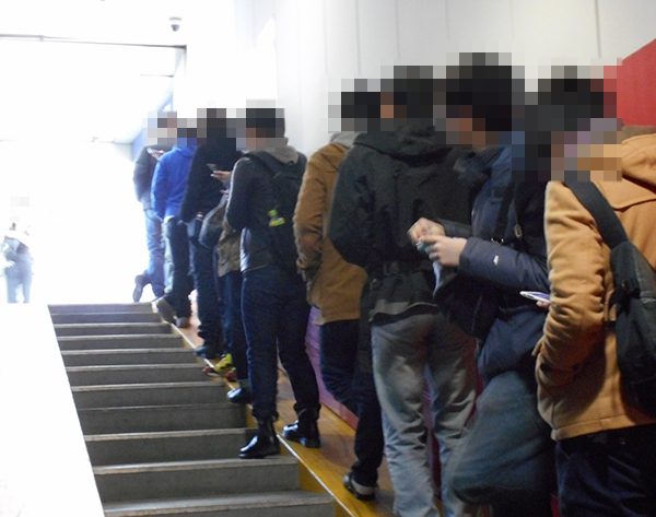 この日は、9時45分からおこなわれたパチスロの入場抽選に多数のプレイヤーが参加。