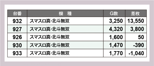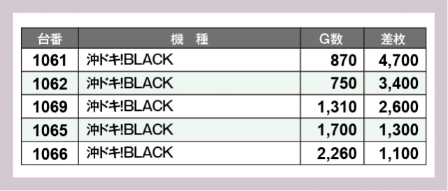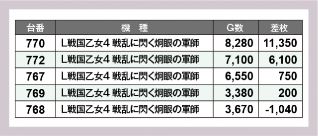 ※差枚数順に掲載しています