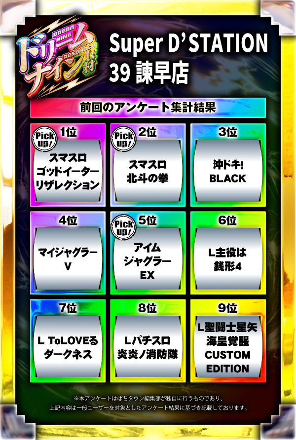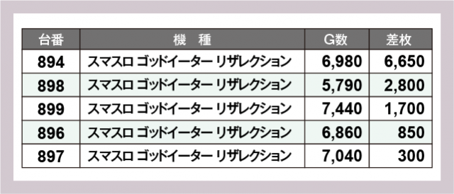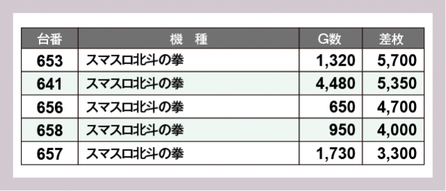 ※差枚数順に掲載しています