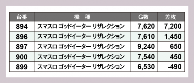 ※差枚数順に掲載しています