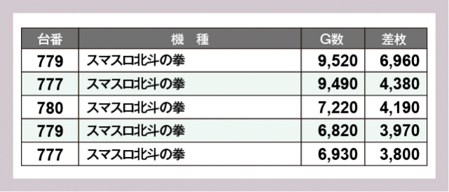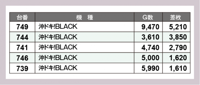 ※差枚数順に掲載しています